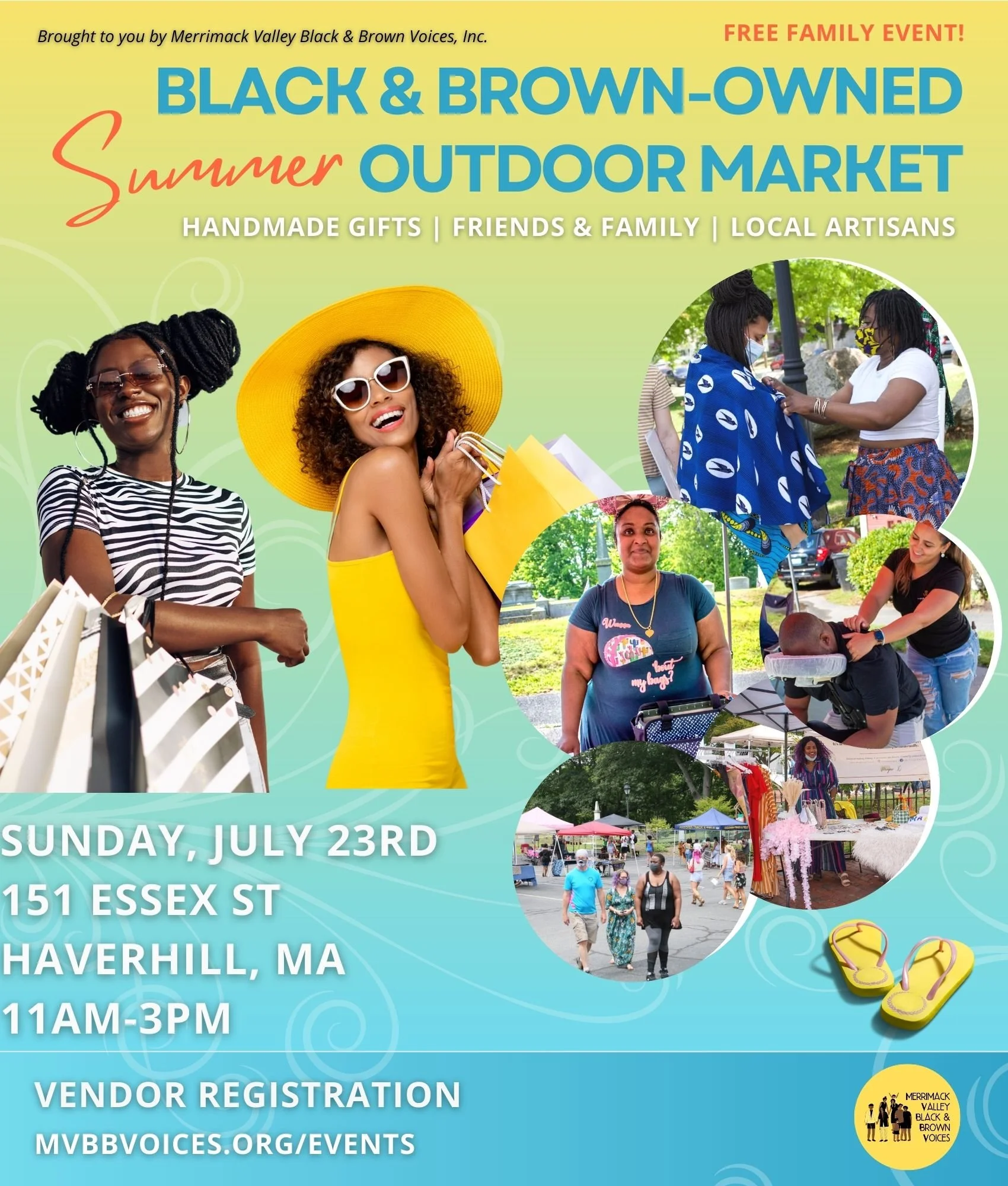 Join us for our Annual Summer Black & Brown Owned Market! This July we are hosting in collaboration with Historic New England in Haverhill!